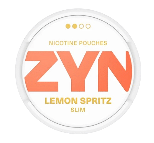 ZYN Lemon Spritz Slim has a flavor of lemon and grapefruit that meets the sweetness of peach with a hint of rose water. A long, slim, all-white pouch. Soft and slightly moistened pouch for enhanced mouth feel and comfort. The flavor delivery is long-lasting. Strength 2. This product is tobacco-free.